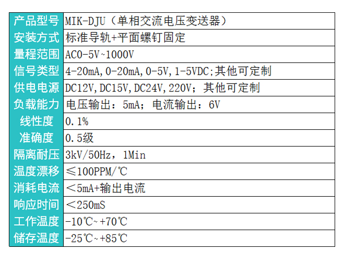 適用場合:MIK-DJU交流電壓變送器可用于測量交流電壓,特別使用于工頻50Hz正弦波交流電壓, 廣泛用于測量交流電壓的場所。