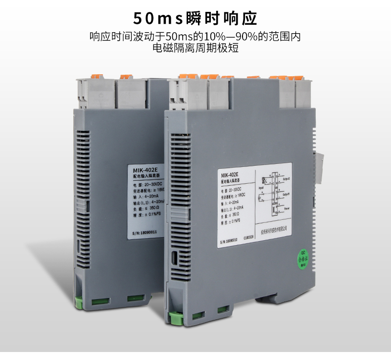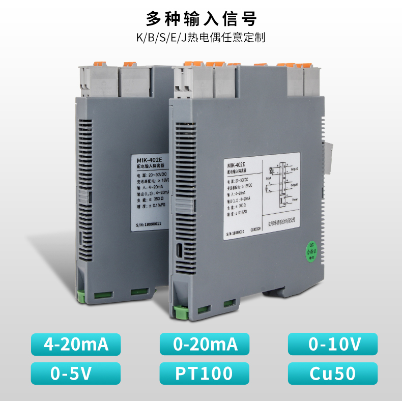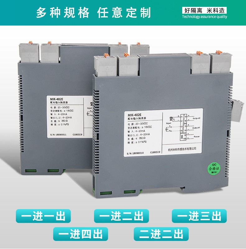 MIK-402E系列信號隔離器,電壓、電流隔離器將直流電壓或電流信號經(jīng)過隔離傳送,轉(zhuǎn)換成所需的信號給其他儀表??梢耘c單元組合儀表及DCS、PLC等系統(tǒng)配套使用,給予現(xiàn)場儀表信號隔離、信號轉(zhuǎn)換、信號分配、信號處理等,從而提高工業(yè)生產(chǎn)過程自動控制系統(tǒng)的抗干擾性能力,保證系統(tǒng)的穩(wěn)定性與可靠性。本產(chǎn)品品種分為一進一出、一進二出、一進三出、一進四出、二進二出,且輸入、輸出、電源三端隔離。并且大量運用于配電柜和隔離箱等各種工業(yè)場合。