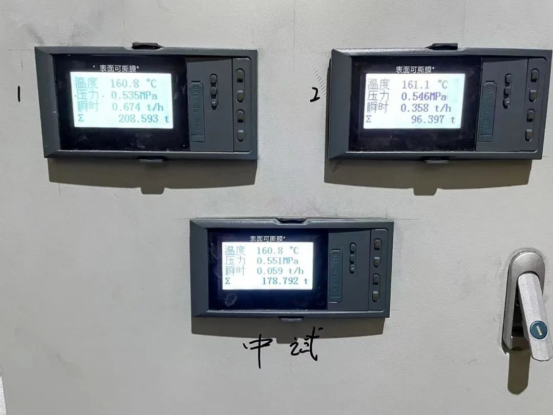 此外,工況現(xiàn)場采用了分體式安裝的形式,通過安裝于多個管道間,同一管路上的渦街流量計、壓力變送器、溫度傳感器采集流量、壓力、溫度信號,并通過信號傳輸,將多個位置蒸汽參數(shù)集中顯示在機柜內(nèi)的流量積算儀中,在確保了計量精準(zhǔn)的同時,也能便于現(xiàn)場工人參數(shù)設(shè)置及抄表維護(hù)。