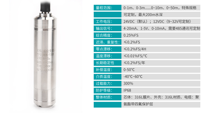 米科MIK-P260投入式液位變送器