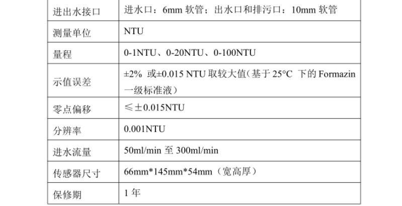 濁度在線分析儀是針對飲用水水質在線監測,量身研發的具有自主知識產權的專利產品,具有超低濁度檢出限、高精度測量、設備長時間免維護、省水工作和數字化輸出的特點,支持RS485-modbus通訊,可廣泛應用于自來水出廠水、二次供水、管網末梢水、直飲水、膜過濾水、游泳池、地表水等濁度在線監測。 原理:濁度在線分析儀將一束激光,從空氣中,按垂直于水面的方向,射入水中。激光被水中的懸浮顆粒散射,水中的傳感器檢測出與入射光成90 度方向的散射光強度,并根據校準表,將散射光強度換成成為濁度值。