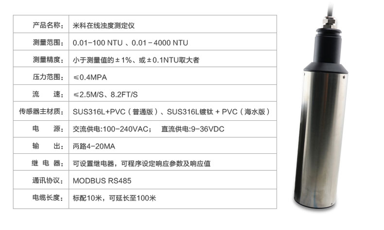 適用場合:濁度在線分析儀具有超低濁度檢出限、高精度測量、設(shè)備長時間免維護、省水工作和數(shù)字化輸出的特點,可廣泛應(yīng)用于自來水出廠水、二次供水、管網(wǎng)末梢水、直飲水、膜過濾水、游泳池、地表水等濁度在線監(jiān)測。